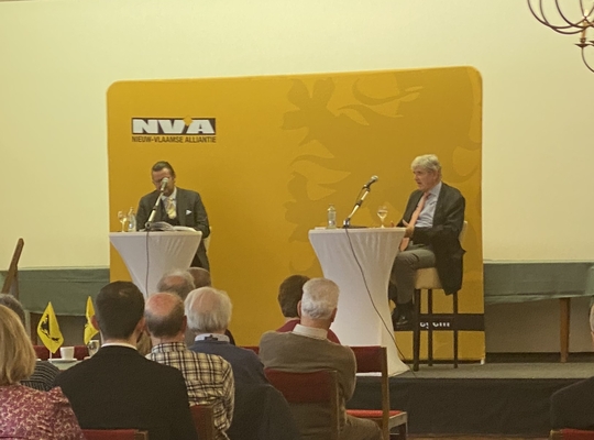Samen met N-VA-afdelingen uit de Zuidrand en de Rupelstreek organiseerden we op zondag 23 april een aperitiefgesprek in Hotel De Basiliek tussen professor emeritus Marc Bossuyt en districtsburgemeester van Wilrijk Kristof Bossuyt. Voorzitter N-VA Edegem Hugo Van Bueren: “Marc Bossuyt werd de allereerste commissaris-generaal voor de Vluchtelingen en de Statenlozen en bundelde zijn memoires in het boek “Tussen demagogie en hypocrisie”. Samen met zijn zoon legden ze het huidige asiel- en regularisatiebeleid onder de loep. De voltallige Vivaldi-samenstelling zou het boek moeten lezen. Zij zorgen met hun non-beleid voor een totaal onhoudbare vluchtelingeninstroom die handenvol geld kost. Daarom pleit de N-VA voor structurele hervormingen in het asielbeleid, maar evenzeer in de sociale zekerheid.”